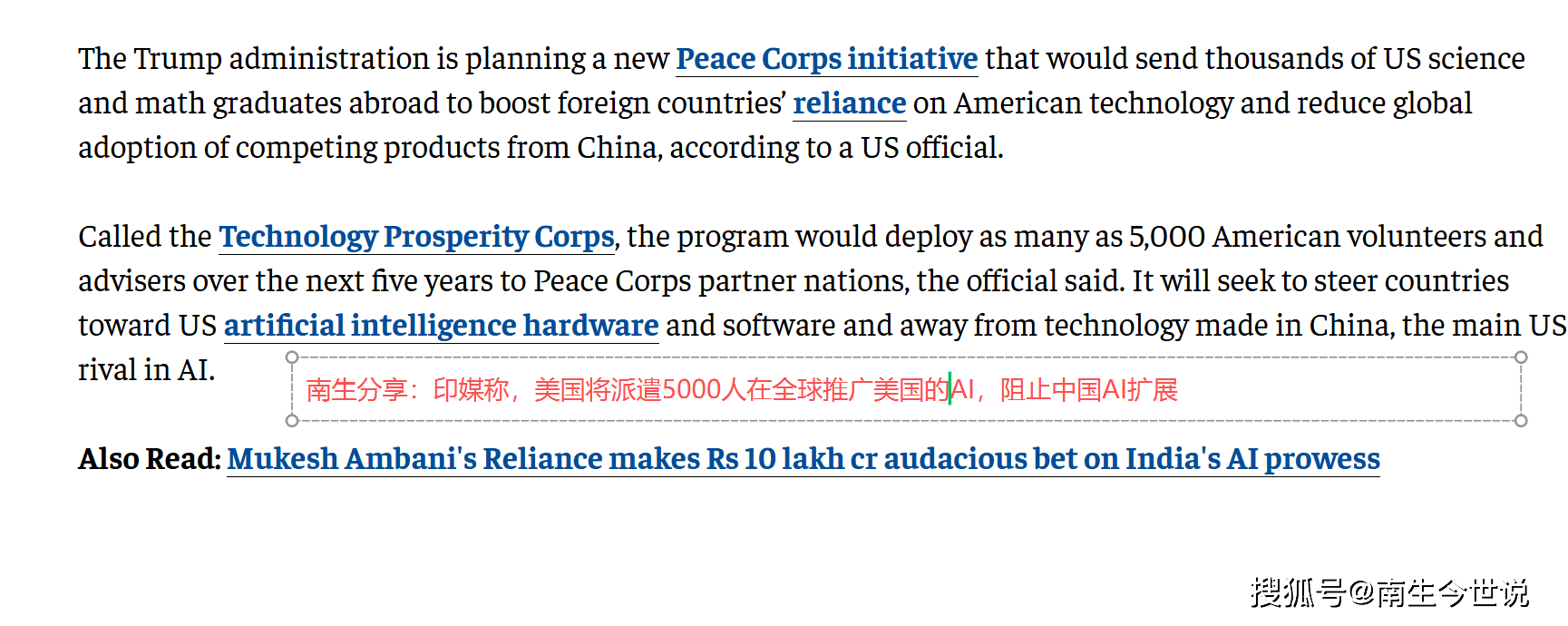 而是一直合做的AI成长,美国已通过美印计谋伙伴关系论坛(USISPF)组织了史上最大规模的美国企业代表团参取此次峰会,进而对冲中国AI手艺、产物及尺度正在全球范畴内的扩张势头,换言之,前往搜狐,反不雅中国,科技成长的素质应是共赢而非阵营对立,通过“手艺繁荣军团”向印度嵌入手艺人才,印度因其正在计谋、市场规模上的奇特价值,中国企业。正在全球 AI 地缘合作的棋局中,